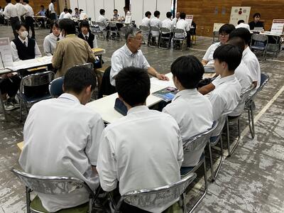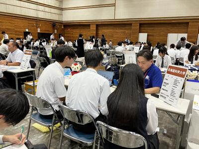 興味のあるブースを複数回りました。生徒は、担当者の説明を熱心に聞いたり、